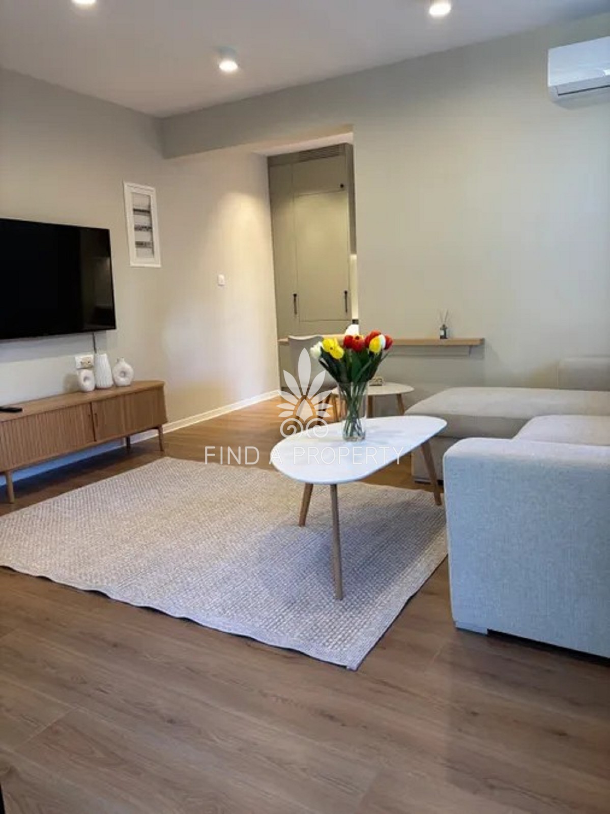 Πρόκειται για ισόγειο διαμέρισμα, πλήρως ανακαινισμένο και επιπλωμένο, φωτεινό και λειτουργικό, εξοπλισμένο με όλες τις ηλεκτρικές συσκευές, έτοιμο να καλύψει τις ανάγκες άνετης διαμονής. Αναπτύσσεται σε ένα επίπεδο και περιλαμβάνει σαλόνι, κουζίνα και ένα μπάνιο, με ευχάριστη αίσθηση χώρου και άμεση επαφή με τον εξωτερικό χώρο μέσω χρήσης κήπου.